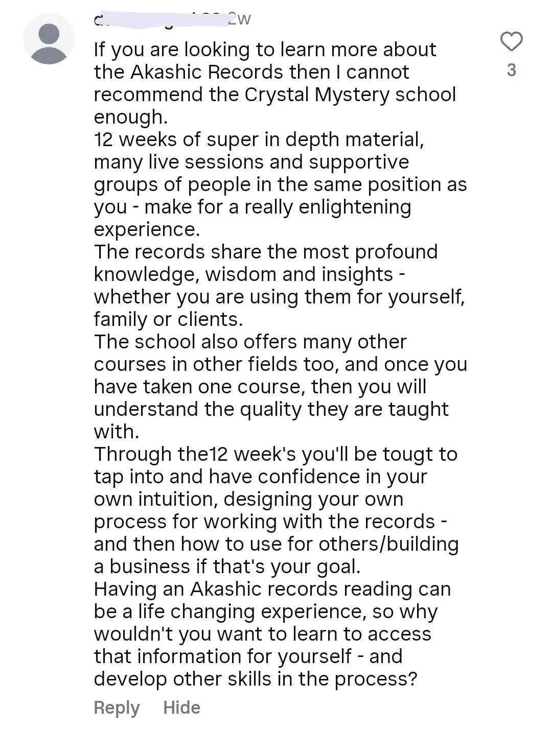 Remember - You do get lifetime access to the course content, so even if you don’t want to learn too much about doing readings for others now, you can come back and watch those videos if you do in the future.